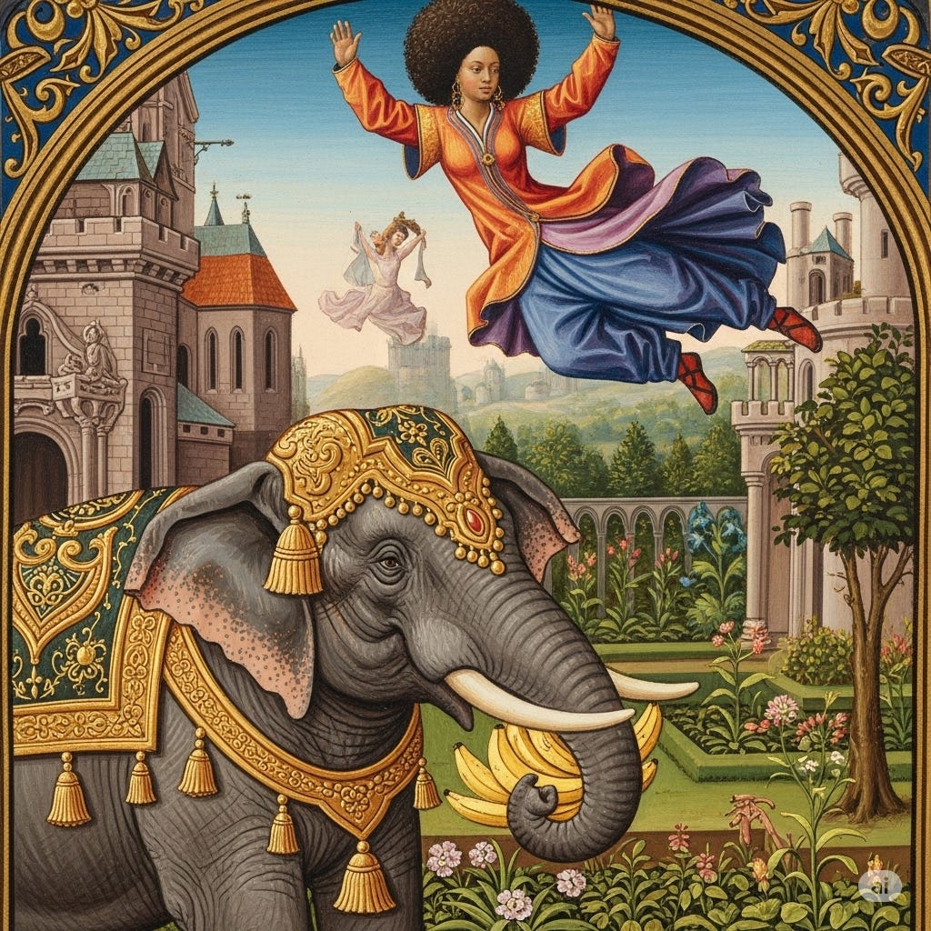 “A man who does not obey when he hears the message —and it can also be a woman, as you know— always reminds me of what a wild elephant once did. On banana plantations, they have little houses built on stilts to protect from ants, rats, and other pests, where they store bananas. In such a small storehouse, an old Black woman was asleep on top of the bananas when a wild elephant burst into the plantation. Naturally, it had smelled the ripe bananas in the hut, so it tore off the roof and put in its trunk and grabbed that old woman and threw her aside and then ate the whole bunch of bananas inside. She landed screaming in the branches of a tree, but she did not die. That is what life does. Life wants to reach its result, and if we don’t intervene, then we are tossed aside as if nothing, as if we never existed. And the experiment is carried out again”⁶.